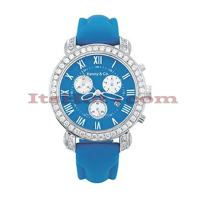 Men’s Fine Diamond Benny Co Watch 3ct Blue