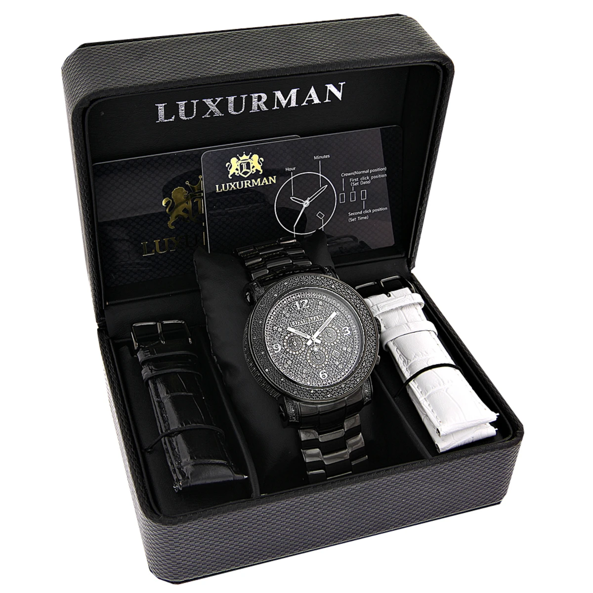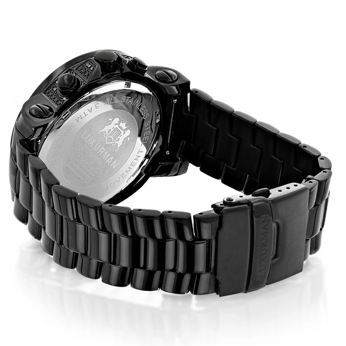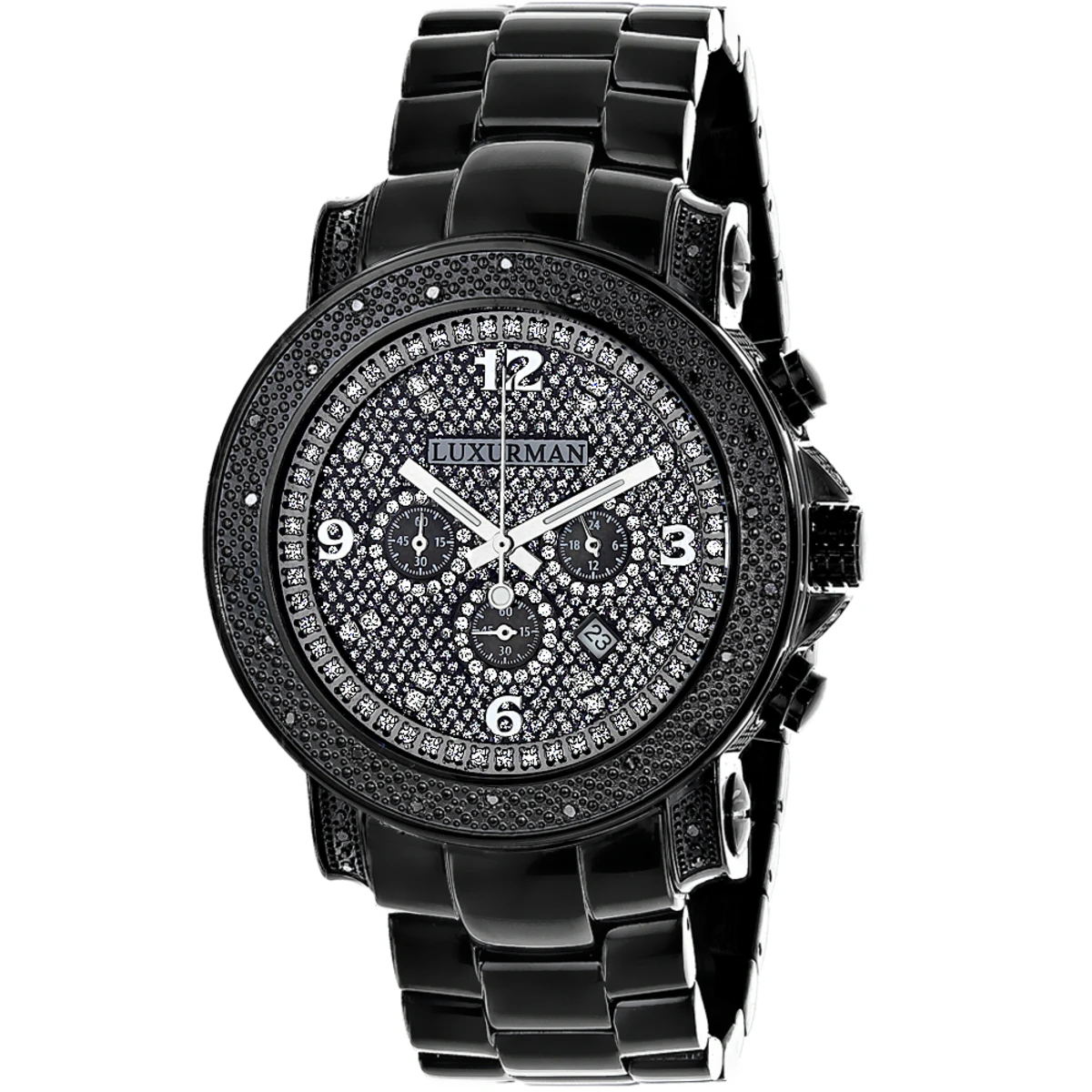 Men’s Oversized Black Diamond Watch By LUXURMAN 0.75ct Chronograph