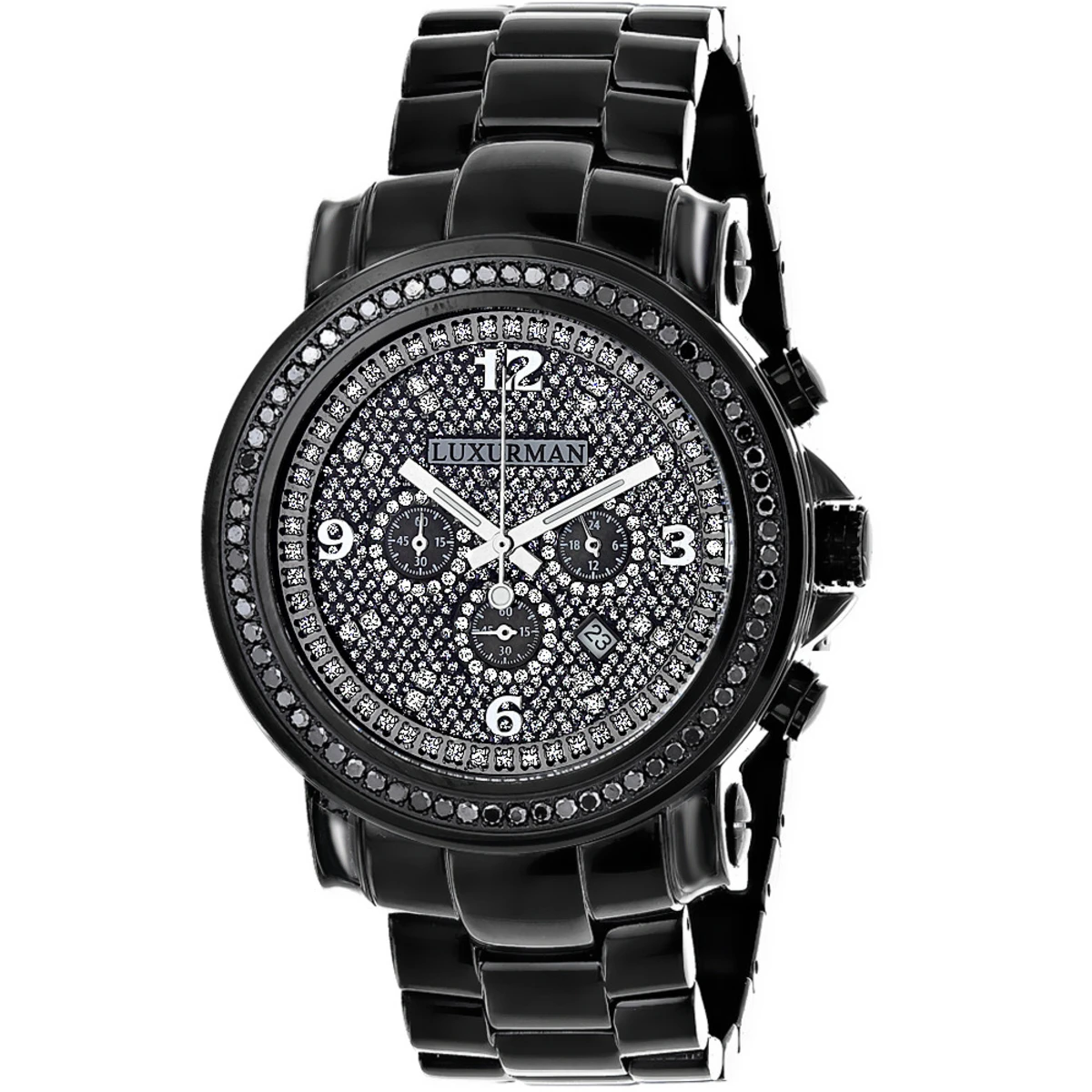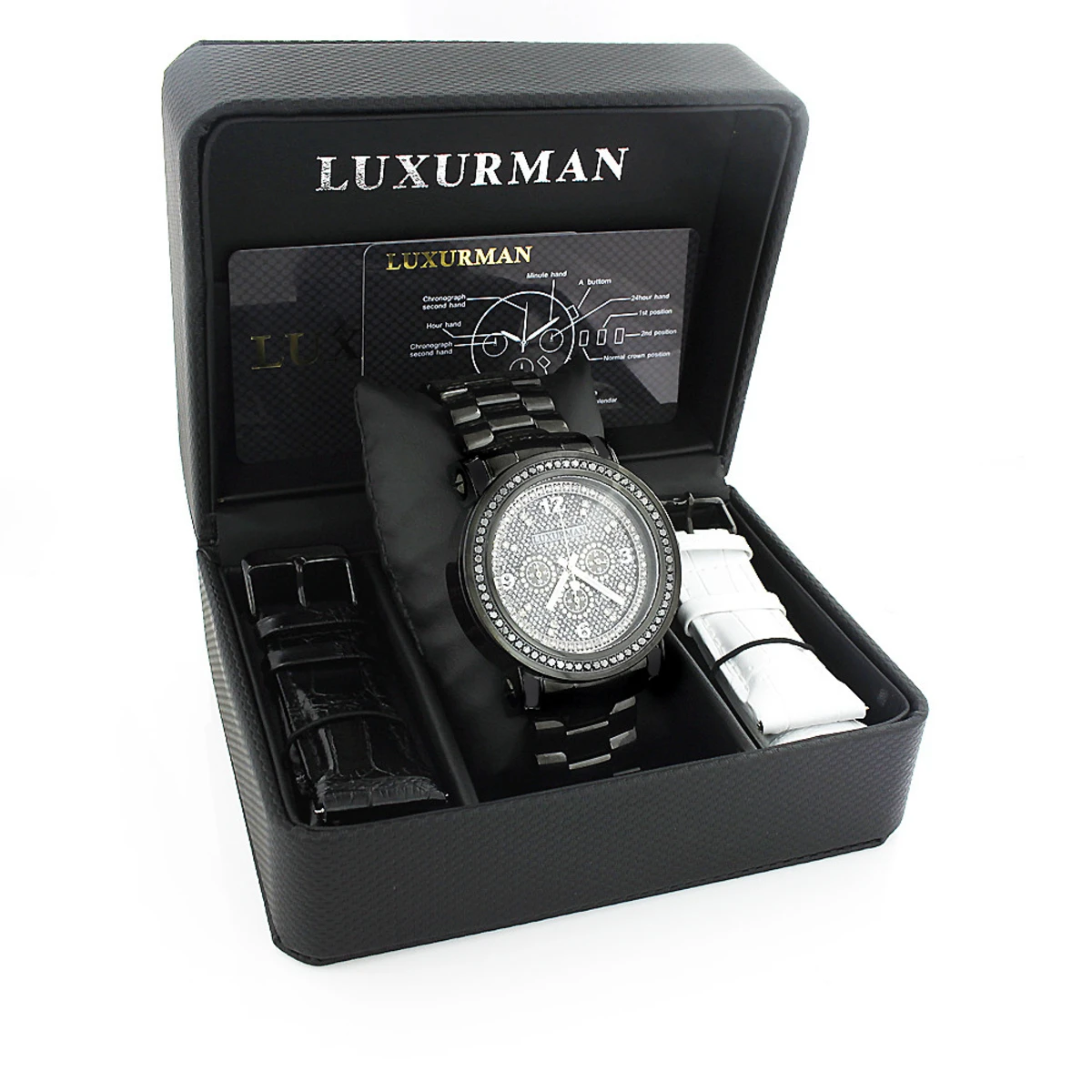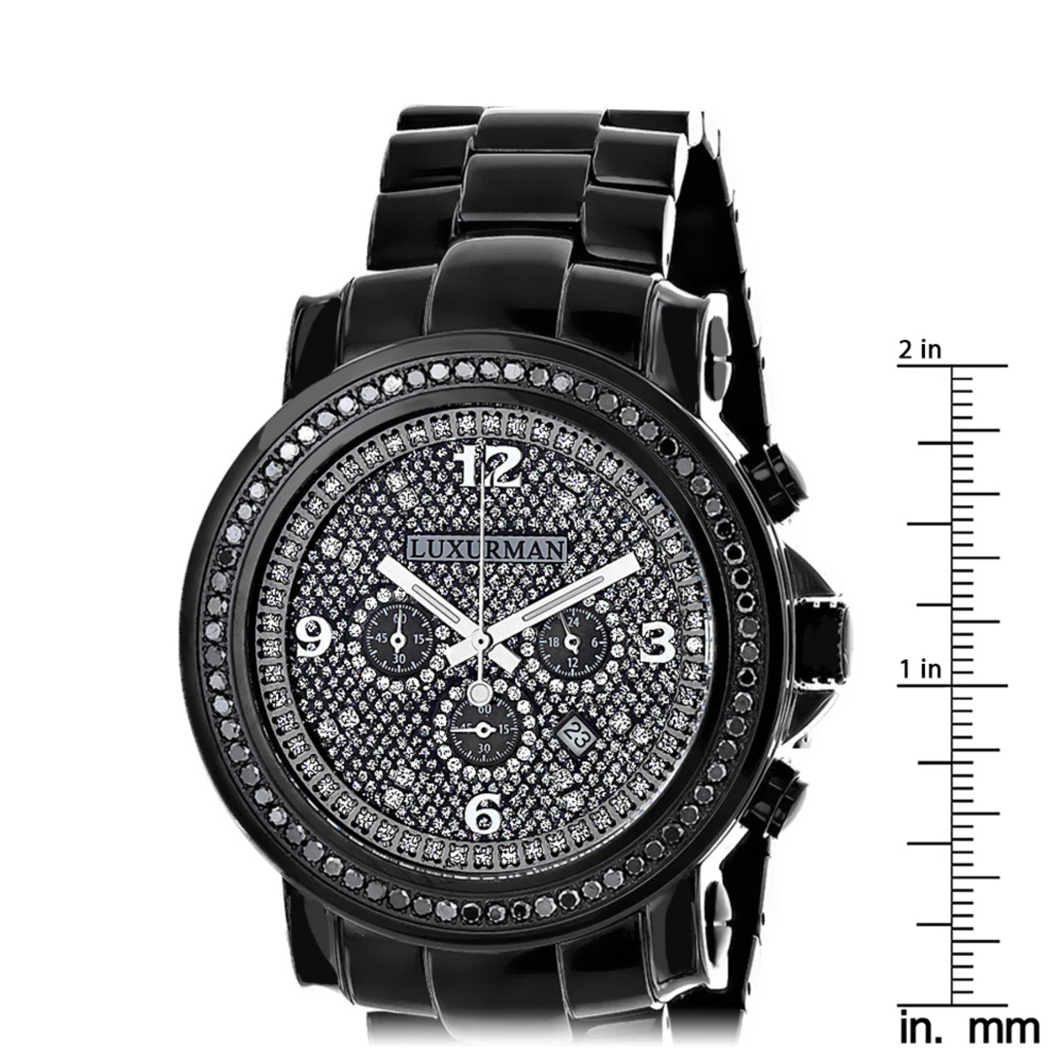 Oversized Men’s Black Diamond Watch Iced Out Luxurman W Chronograph