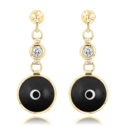 Good Luck Charms 3/8in (10mm) 14K White Gold 0.20ct Diamond Evil Eye Earrings Black