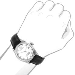 Swiss Quartz Watches: This Luxurman Women’s Diamond Tribeca Watch with Leather Band features 1.5 carats of natural mined diamonds, a luxurious mother of pearl dial, black leather band, Swiss movement and a date display window at a 3 o’clock position. This stylish women’s diamond Luxurman watch comes with two extra leather interchangeable straps in different colors and full 5 year factory warranty. This Luxurman Diamond watch is a perfect present for any occasion.